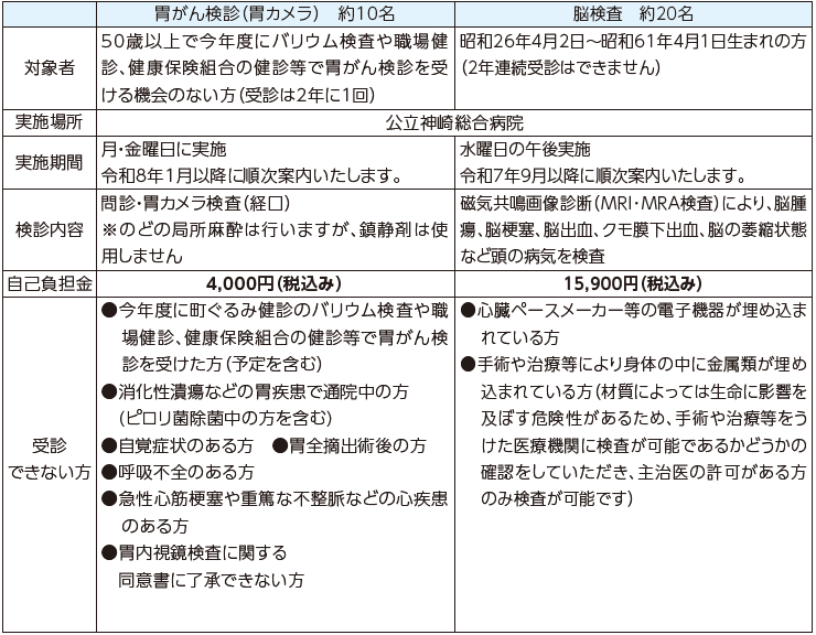 胃カメラ検査および脳検査の受診者を追加募集します。