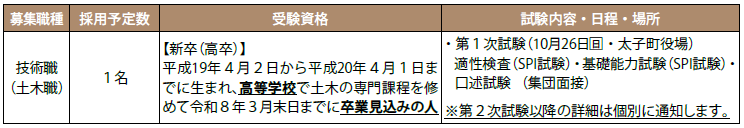 なお、既卒者および新卒(大卒)を対象とした技術職(土木職)の募集は随時行っています。
