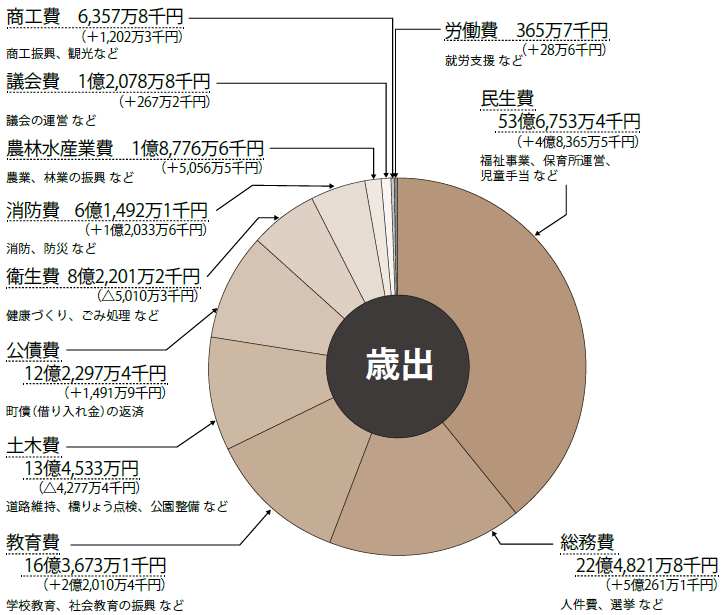 歳出:136億3,350万9千円(+13億1,429万4千円)