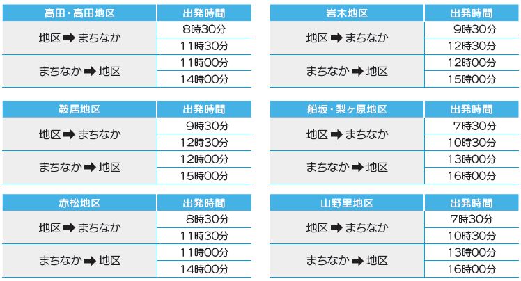 地区ごとに行きの時間や帰りの時間が決まっています。