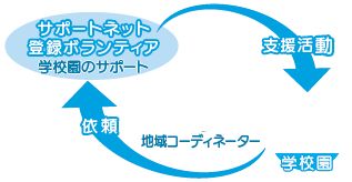 学校園長からの依頼が事務局や地域コーディネーターに入り、登録者の活動希望を照会し、調整、連絡を行います。