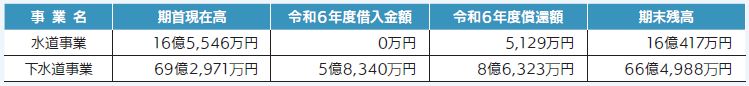 主な事業:高田台地区送・配水管舗装本復旧事業、与井地区送・配水管更新耐震化事業、与井水源地取水井浸水対策事業及び大枝新浄水場非常用自家発電設備設置事業