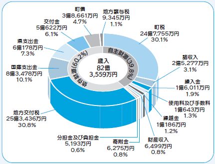 一般会計の決算は、歳入が対前年度3.3%減の82億3,559万円、歳出が対前年度3.2%減の80億3,063万円でした。