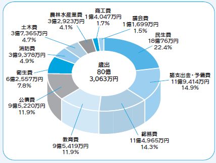▽歳出 80億3,063万円(対前年度3.2%減)