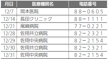 ◆休日救急当直医(12月)
