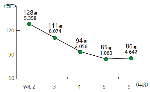 町債とは、大きな事業を行うために借り入れるお金のことで、令和6年度は、各種大型事業を実施したことから前年度比で1億円以上増加しました。一方で、普通会計以外もあわせた佐用町全体の町債残高は約159億円で、合併以降最小となりました。