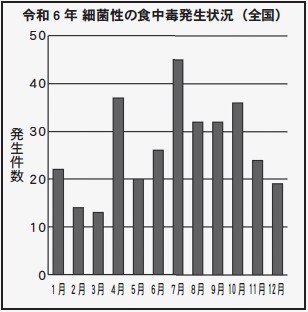 食中毒は、年間を通して発生しており、気温や湿度が高い時期は細菌性の食中毒が増加する傾向にあります。