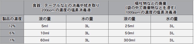 ○塩素系消毒液の作り方(厚生労働省:予防対策より)
