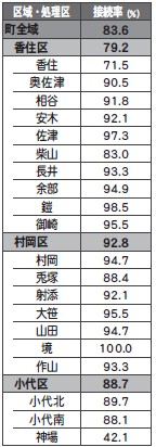 令和6年度末の下水道の接続率は83.6%となりました(対前年度比0.1%の増)。接続率の高い処理区は、境処理区の100%、鎧処理区の98.5%、佐津処理区の97.3%で、接続率の低い処理区は、柴山処理区の83.0%、香住処理区の71.5%、神場処理区の42.1%となっています。
