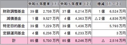 減債基金:公債費(借入金返済の費用)の増加に備える基金