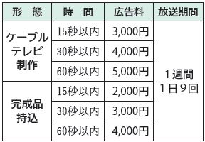 ※ケーブルテレビ制作でナレーションをつける場合は、1,000円加算