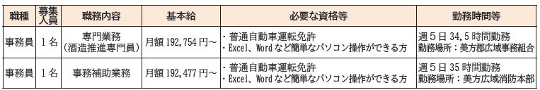 応募方法:市販の履歴書(写真貼付)に必要事項を記入し、美方郡広域事務組合総務課へ提出してください。