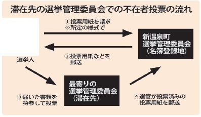 有権者が選挙期間中、名簿登録地以外の市区町村に滞在する場合、滞在先の選挙管理委員会で投票できます。