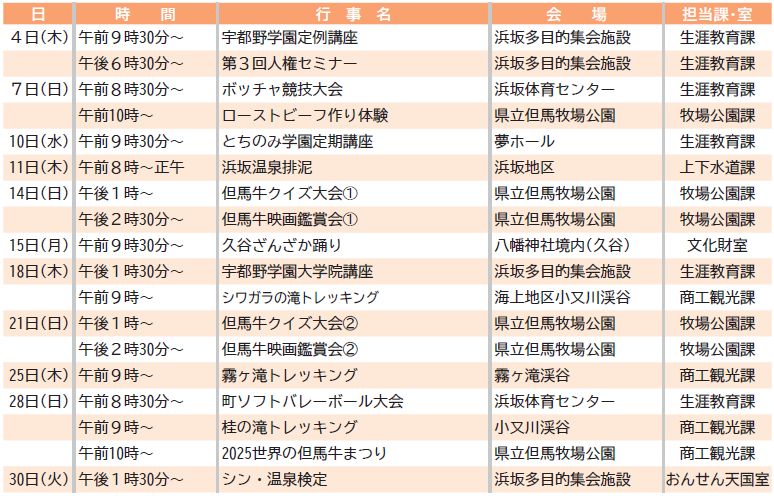 くらし 9月の行事予定 40/46 前の記事 次の記事 発行日 : 2025年08月28日 自治体名 : 兵庫県新温泉町 広報紙名 : 広報しんおんせん 令和7年9月号 vol.240 Tweet シェアする 9月の各種相談 山陰海岸ジオパークガイド養成講座