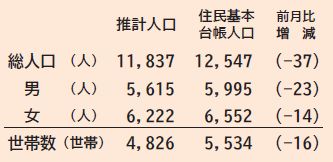 その他 まちのうごき 8月1日現在 42/46 前の記事 次の記事 発行日 : 2025年08月28日 自治体名 : 兵庫県新温泉町 広報紙名 : 広報しんおんせん 令和7年9月号 vol.240 ■推計人口 直近の国勢調査の人口を基礎に、住民基本台帳の移動数を加減し、町内に居住していると推計される人口 ■住民基本台帳人口 住民基本台帳に届出により記録されている町民の数 Tweet シェアする 山陰海岸ジオパークガイド養成講座 町県民税(普通徴収)第2期