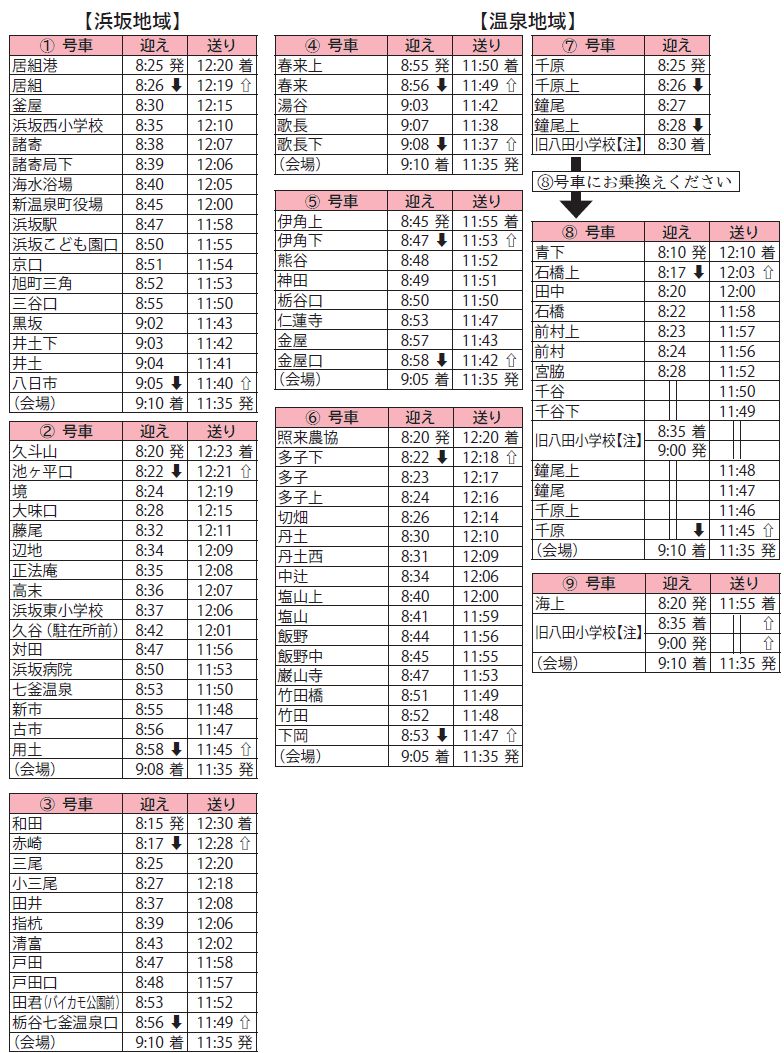 ■「新温泉町恒久平和祈念式」送迎バス時刻表