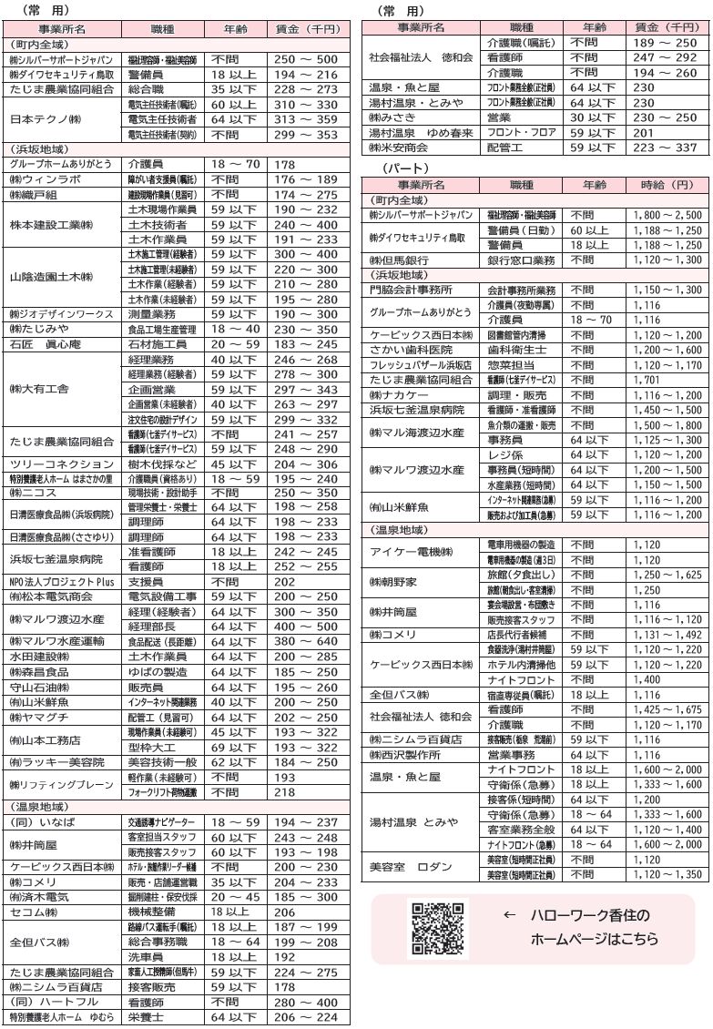 サンシーホール浜坂では、ハローワークから定期的に求人情報が届き、閲覧ができます。