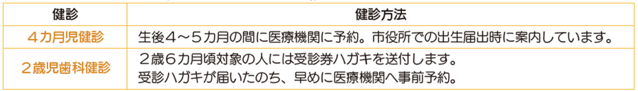 ○個別健診(市内の委託医療機関(小児科・歯科医院)で実施します)