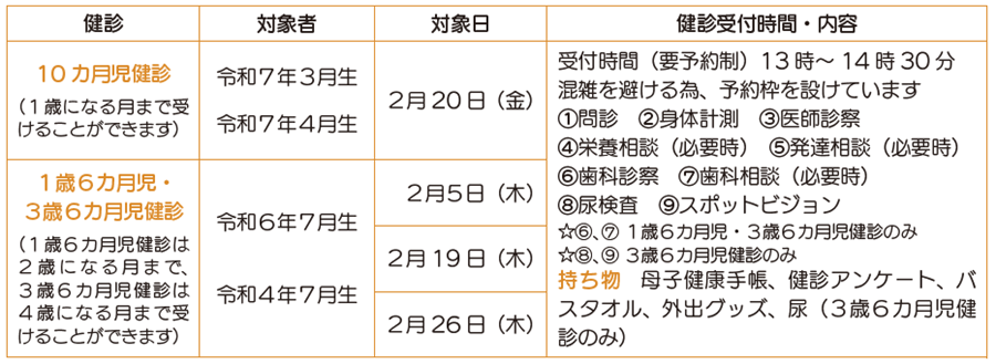 1歳6カ月児健診と3歳6カ月児健診は同日開催での集団健診です。