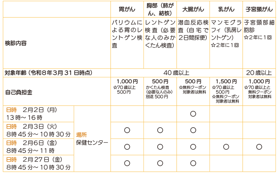 ■がん検診(集団検診) 要事前予約(【電話】63-9276)または〔WEB予約〕