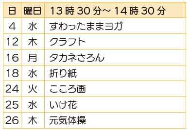 不定期で口腔体操や脳トレ体操、栄養講座あり