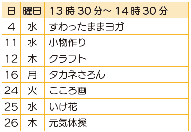 不定期で口腔体操や脳トレ体操、栄養講座あり