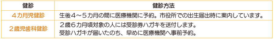 ▼個別健診(市内の委託医療機関(小児科・歯科医院)で実施します)