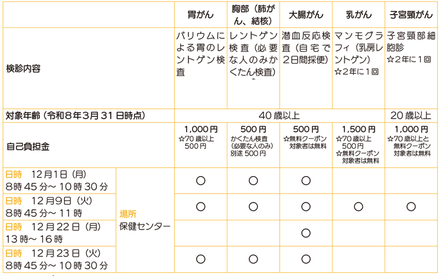 ☆詳しくは、市ホームページを確認いただくか保健センターへ問合わせください