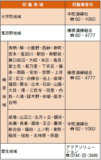 ◇東宇陀クリーンセンター(【電話】92・2444)