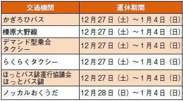 12月27日~翌年1月4日まで、市の業務は休業となります。