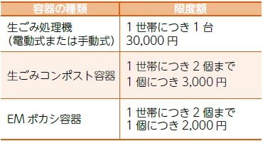 家庭用生ごみ処理機または処理容器を購入し、ごみの減量に取り組まれる方に、予算の範囲内において購入費用の一部を補助します。