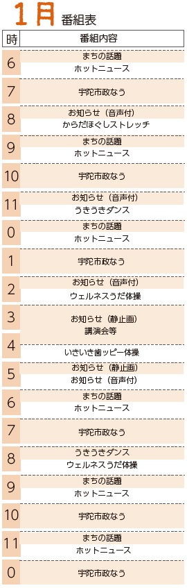 くらし Uda-ch(うだチャン)11ch 38/43 前の記事 次の記事 発行日 : 2025年01月01日 自治体名 : 奈良県宇陀市 広報紙名 : 広報うだ (2025年1月号) ※1~10日ホットニュースの前に、市長と議長の「新年のご挨拶」を放送します。 ※番組内容および、放送時間は予告なく変更される場合があります。ご了承ください。 ※「宇陀の気になる企業」は、「まちの話題」終了後に放送しています。 問合せ:自主放送スタジオ 【電話/IP電話】82・2497 Tweet シェアする 人権コーナー 公民館だより