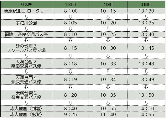 ◇市営赤人霊苑 お墓参り臨時バス時刻表
