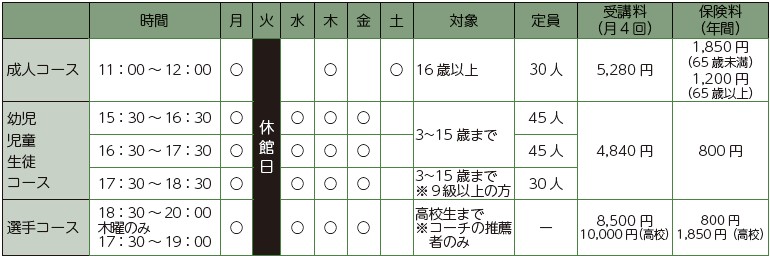 ・新規お申込みの場合、各教室1人1回限り可能。(前日まで申し込み必要。定員数に達している場合は、お断りする事もあります)
