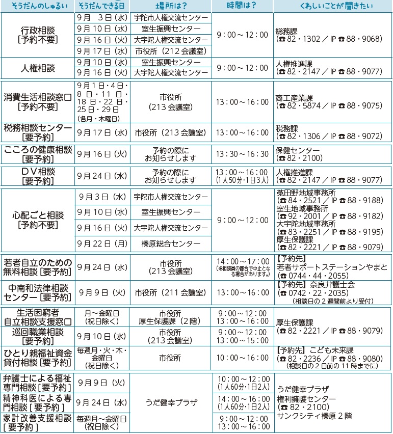 くらし 今月の無料相談(むりょうそうだん) 48/58 前の記事 次の記事 発行日 : 2025年09月01日 自治体名 : 奈良県宇陀市 広報紙名 : 広報うだ (2025年9月号) Tweet シェアする 宇陀市市制20周年記念事業 令和七年冬巡業 大相撲宇陀場所 はい!こちら消費者相談窓口です