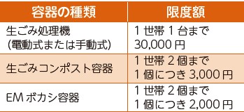 家庭用生ごみ処理機または処理容器を購入し、ごみの減量化に取り組まれる方に、予算の範囲内において購入費用の一部を補助します。