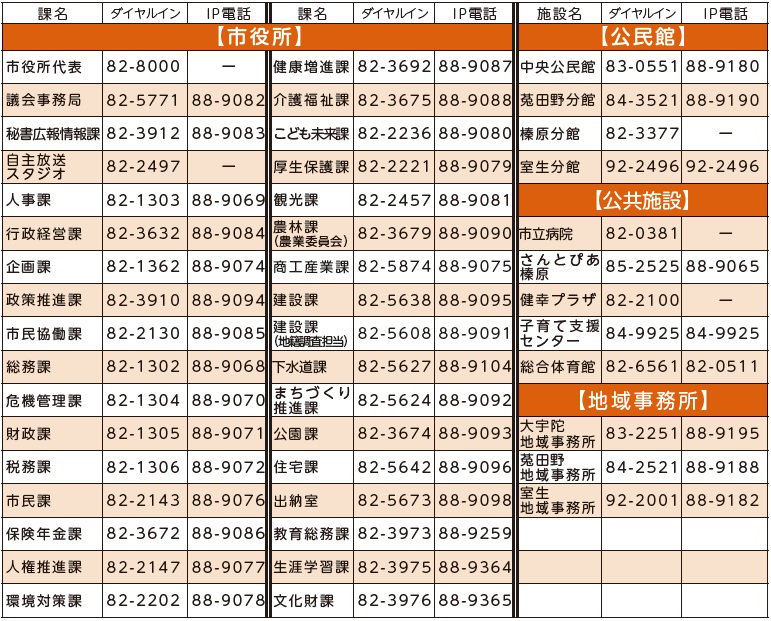 くらし 公共施設ダイヤルイン番号・IP電話番号 42/61 前の記事 次の記事 発行日 : 2025年10月01日 自治体名 : 奈良県宇陀市 広報紙名 : 広報うだ (2025年10月号) ※電話番号ですが紙面の都合上、掲載しない月も有ります。 Tweet シェアする 宇陀市市制20周年記念事業 広報うだ設置場所