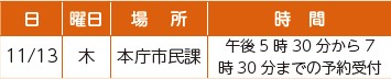 マイナンバーカードの申請・受取・更新について、予約制で次のとおり夜間受付をしています。