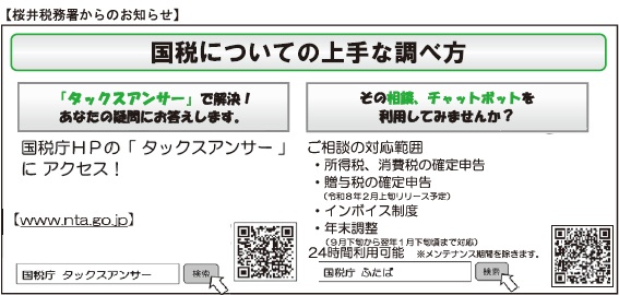 くらし 今月の情報【税・保険】 12/25 前の記事 次の記事 発行日 : 2025年12月01日 自治体名 : 奈良県山添村 広報紙名 : 広報やまぞえ 令和7年12月号 ■令和7年分確定申告について 令和8年2月16日(月)〜3月16日(月)の間において、確定申告相談を実施します。詳しくは、令和8年1月の広報をご覧ください。 問合せ:税務会計課 Tweet シェアする 桜井税務署からのお知らせ 今月の情報【子育て・教育】