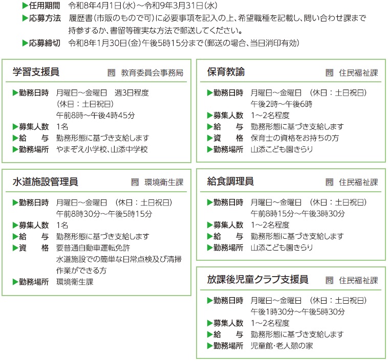 しごと 会計年度任用職員を募集します 10/19 前の記事 次の記事 発行日 : 2026年01月01日 自治体名 : 奈良県山添村 広報紙名 : 広報やまぞえ 令和8年1月号 Tweet シェアする 今月の情報【その他】 広報やまぞえに広告を掲載しませんか