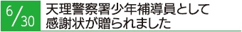 天理警察署少年補導員の畑中環一さん(堂前)が10年間少年の非行防止に務められ、この度天理警察署長から感謝状が贈られました。