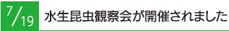 峰寺の大橋ほのぼの公園において、布目川を美しくする会の主催による水生昆虫観察会が開催されました。
