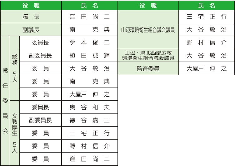 ※山辺・県北西部広域環境衛生組合議会議員の任期は、令和11年9月29日まで。
