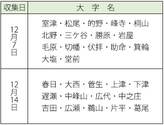 年3回(4月・8月・12月)収集している粗大ごみ及び有害ごみの収集日は次のとおりです。