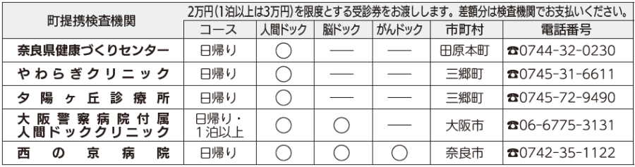 平群町国民健康保険または後期高齢者医療制度の加入者が、人間ドック・脳ドック・がんドックを受診する場合、その受診費用の一部を助成します。