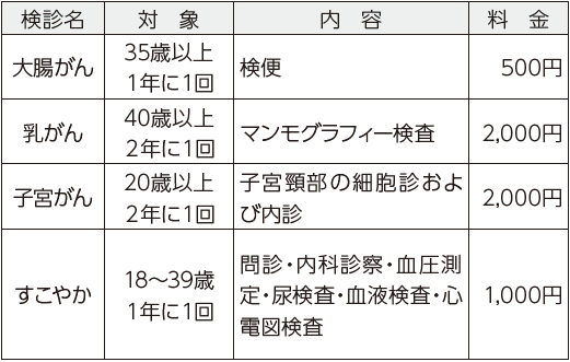 ◇個別検診(大腸がん・乳がん・子宮がん・すこやか健診)はお済みですか?受診期限は3月末までです。