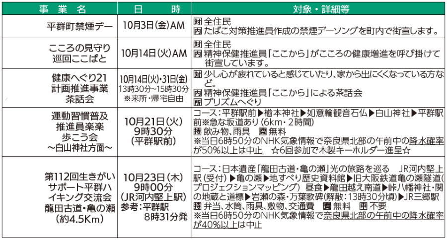 健康 健康へぐり21計画推進事業 ヘルスボランティアだより 42/44 前の記事 次の記事 発行日 : 2025年10月01日 自治体名 : 奈良県平群町 広報紙名 : MY TOWN 平群 令和7年10月号 Tweet シェアする ほけん事業予定表 人の動き