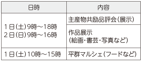 町の農業・芸術文化の振興と、町民の親睦を深めること、地域コミュニティの活性化を目指して、今年も開催します!