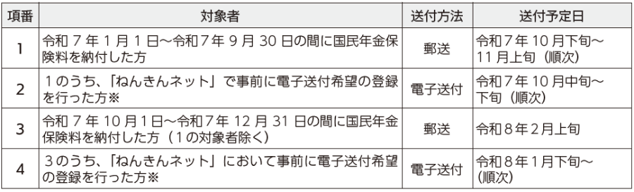 ※「ねんきんネット」で事前に電子送付希望の登録を行った場合、郵送は行いません。