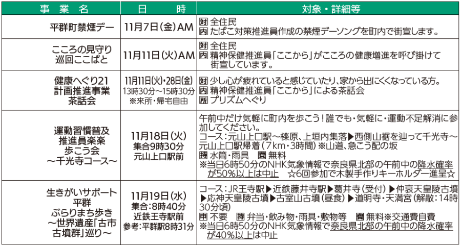 健康 健康へぐり21計画推進事業 ヘルスボランティアだより 41/43 前の記事 次の記事 発行日 : 2025年11月01日 自治体名 : 奈良県平群町 広報紙名 : MY TOWN 平群 令和7年11月号 Tweet シェアする ほけん事業予定表 人の動き